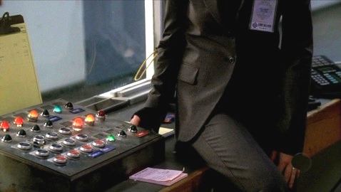 and plants a gizmo to make all the screens go blank