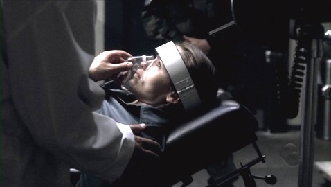 after she is able to stab the reviving doc in the jugular with a scalpel